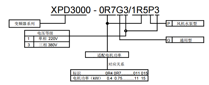 | 20 | XPD3000-200G3/220P3 | 200/220 | 377/415 | 柜机 | ||